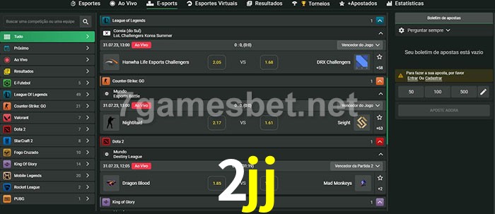 O 2jj oferece uma grande seleção de opções de apostas em e-sports com probabilidades competitivas
